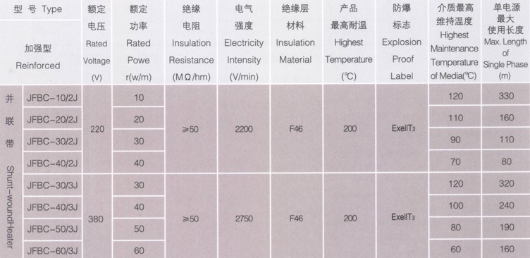 船用电伴热带技术参数: