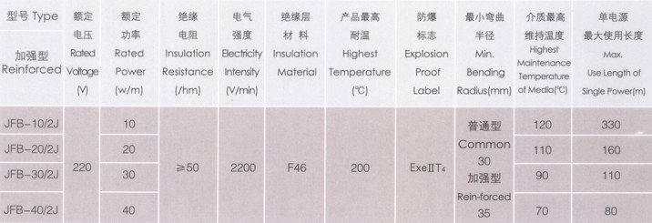单相恒功率并联电伴热带参数表: